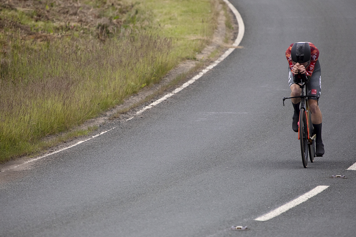 British National Road Championships 2025 - Time Trial - Elite Women - Jessica Roberts in a tuck position as she tackles a descent
