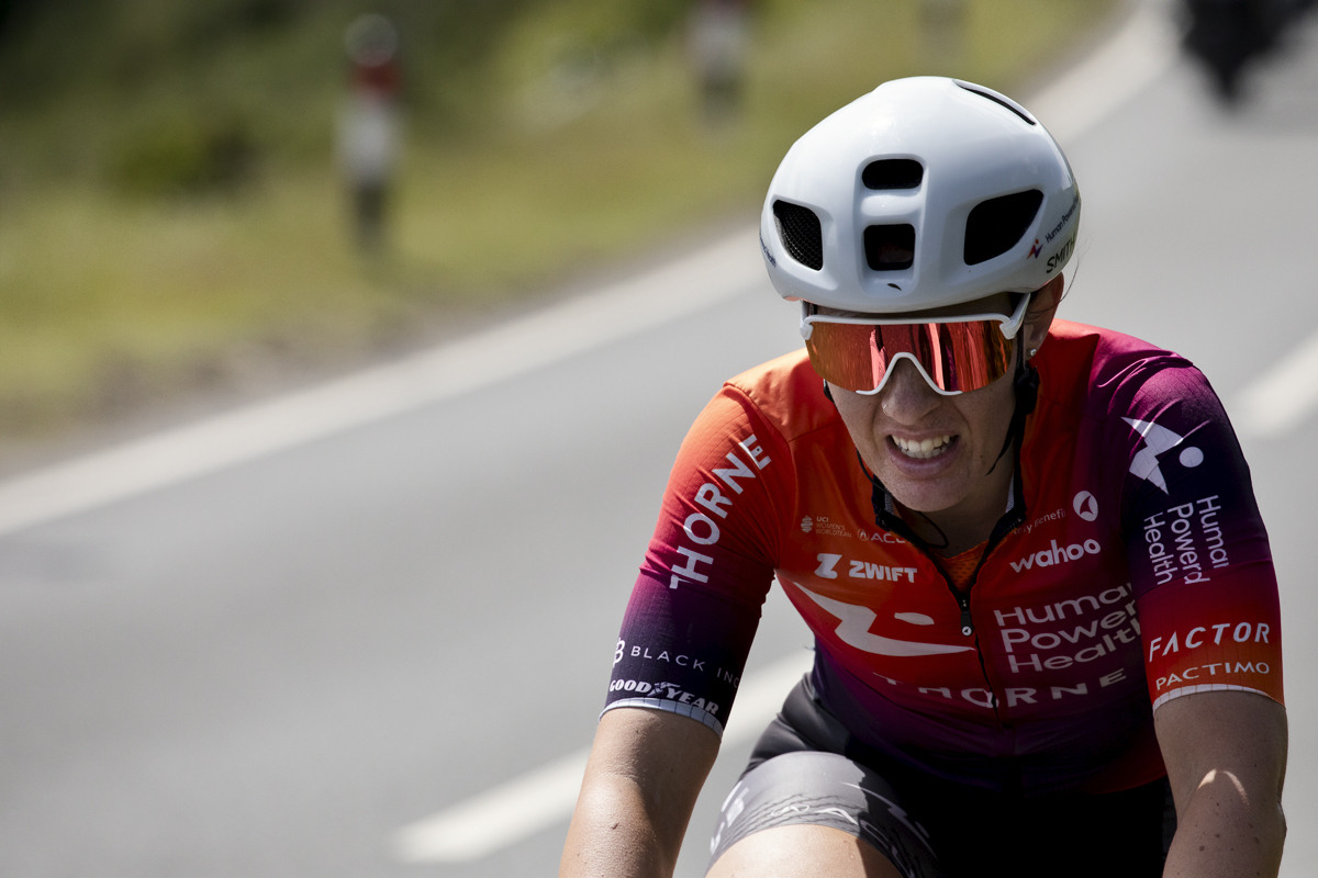Tour of Britain Women’s 2025 - Stage 2 - Nina Berton is followed by a team car as she takes on the climb at Saltburn-by-the-Sea