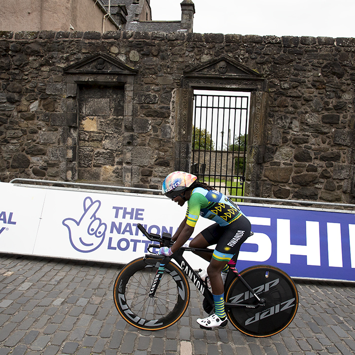2023 UCI Cycling World Championships - Time Trial - Elite Women - Diane Ingabire of Rwanda climbs the cobbles towards the finish